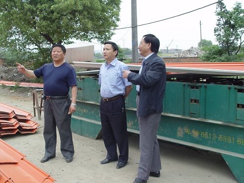 王建国总经理深入现场,认真仔细查看了现场钢结构制作质量、吊装情况,在详细了解了库区建设设计、库区建设进度及仓储市场前景和建成后的经营准备工作等事宜后,对工程建设提出了加快进度、注重质量、注意安全的具体要求。