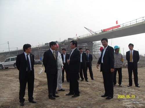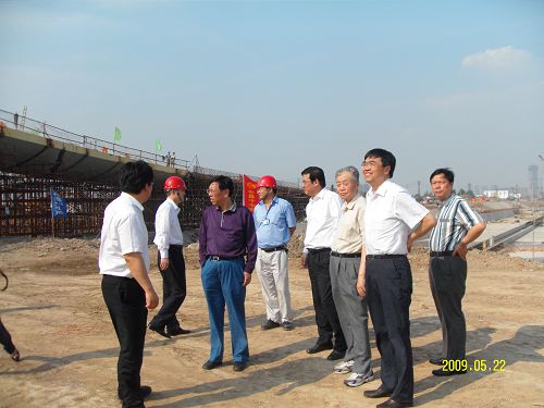 位董事认真视察了滨江大道淮河路NE定向匝道桥钢箱梁段、下沉式地道底板、侧墙、路面二灰碎石基层等项目的施工,他们对滨江大道1.1标的工程质量、进度、安全和施工现场的文明施工给予充分肯定。