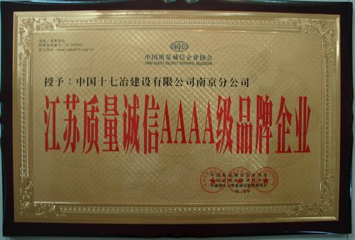 近日,从江苏质量诚信监督委员会获悉,中国十七冶集团有限公司南京分公司荣获“江苏质量诚信AAAA级品牌企业”荣誉称号。
