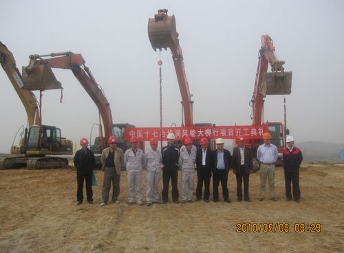 58上午,在山东蓬莱大柳行工地举行了隆重的开工仪式。华润蓬莱项目总指挥曲鲁光、副总指挥张守峰,十七冶风力发电公司副经理薛友等参加了仪式。随着业主单位华润蓬莱大柳行项目总指挥曲鲁光一声令下,顿时鞭炮齐鸣,十七冶风电工程公司承建的华润风能山东蓬莱大柳行一期风力发电工程项目正式开工。