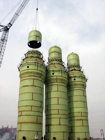 526上午,十七冶长江钢铁技改工程2#高炉系统3座热风炉已全部封顶。