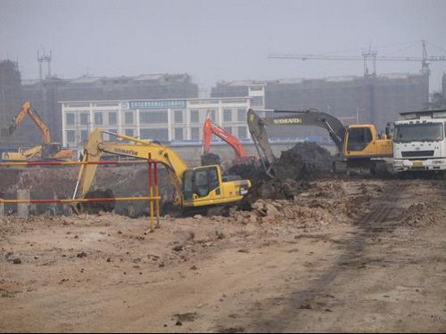 近日来,金安小区项目经理部日夜奋战保工期,近千名工人坚守在工作岗位上。几十台大型推挖机、土方车和桩机昼夜施工,施工现场一派热火朝天景象。