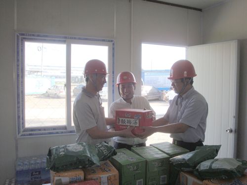 康董事长一行顶着烈日先后视察了长江钢厂项目部、科达机电住宿楼项目部、马鞍山软件园项目部以及金安小区项目部,向各项目部发放了防暑降温的茶叶和饮品。每到一处,康董事长都要求项目部务必把现场的防暑降温工作和安全工作放在当前工作的第一位,在当前高温条件下,要切实安排好各项工作,合理安排休息时间,要确保万无一失。
