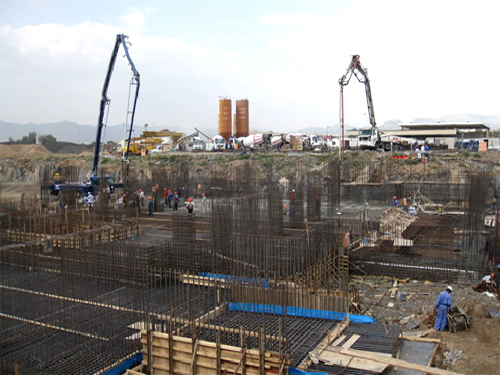 日前,由城建工程技术公司承建的也门首都办公楼项目结构关键部位——负一层地下室1.2米厚钢筋混凝土楼板完成浇筑,这标志着该项目结构施工最关键的难点已顺利突破。