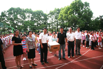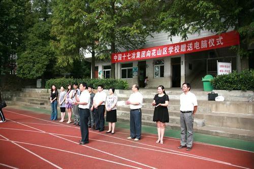 在霍里中心小学操场上,举行了“中国十七冶集团向花山区学校赠送电脑仪式”。花山区政协副主席、统战部部长王笑、区教育局党工委书记凌士钟与霍里中心小学、三姚小学、冯桥小学和濮塘小学的四位校长及霍里中心小学100多名师生参加了赠送仪式。