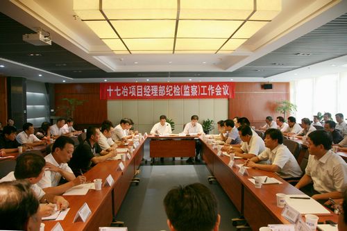 91下午,公司召开项目经理部纪检(监察)工作会议。公司党委委员、副总经理喻世功,公司党委委员、人力资源部部长方荣华,公司纪委副书记、组织文化部部长韩伟群,组织文化部副部长杨绍凤与各单位纪委书记、各项目经理部纪检(监察)组组长近百人参加了会议。会议由公司党委委员、人力资源部部长方荣华主持。