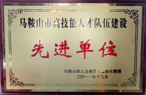 公司获“马鞍山市高技能人才队伍建设先进单位”称号
