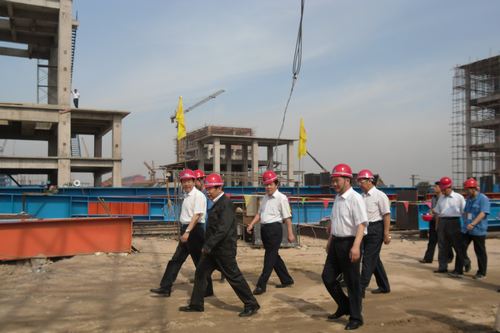 614上午,山东省莱芜市市长马平昌在泰钢集团董事长王守东等人的陪同下,冒着高温莅临十七冶山东分公司泰钢烧结工程现场视察指导工作。