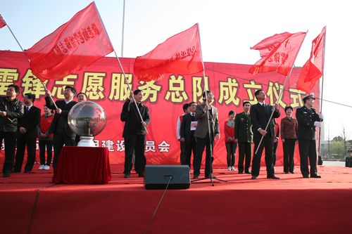 在授旗仪式中,马鞍山市委书记郑为文号召大家高举志愿服务的大旗,从友善出发,从小事做起,共同唱响雷锋之歌,共同浇灌文明之花,不断提升城市文明的新境界,不断创造幸福美好的新生活。