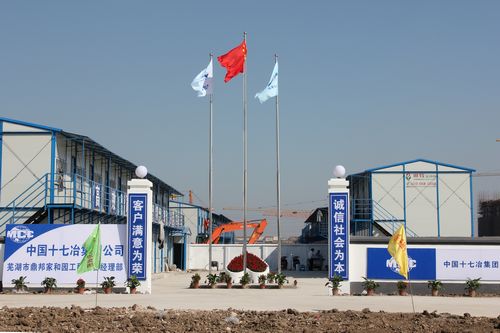 工程中标后,项目部迅速进场开始筹备,高标准建设大临设施和企业文化外化系统,在短短近20天的时间里就快速建成了项目部大院及146间面积达2900平方米的办公室和员工宿舍,完成了近500余米的现场临时砼道路。大临设施和外化建设在项目周边成为新的亮点。业主李航总经理赞扬说,十七冶不愧为大企业,在如此短的时间内就做好了一切开工准备,速度之快、质量之好,企业文化外化标准之高,充分体现了国有企业的素质和形象。