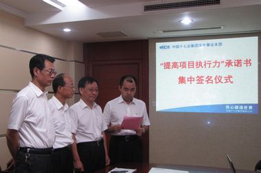 为深入开展管理提升活动,切实增强执行意识,提高项目执行力,确保公司各项管理目标的顺利实现,根据中国十七冶集团第三届企业文化节活动方案的要求,93日上午,各二级公司、各项目经理部举行了“提高项目执行力”承诺书的集中签名仪式。