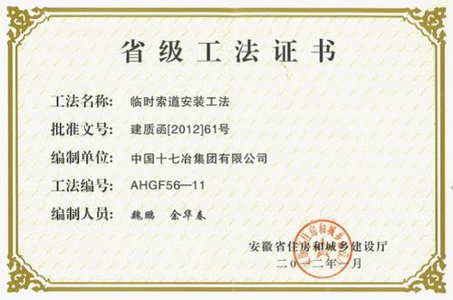 公司获五项省级工法