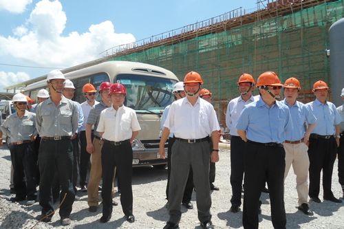 54,王建国董事长与中钢集团董事长邹若齐视察了CSVC公辅工程施工现场。王董事长肯定了项目部前期的工作,并主持召开了项目工作会议。王董事长强调,项目部要做好质量管理策划,以精品标准打造工程质量;根据越南当地情况做好各项预案,确保安全生产零事故;落实ERP网络管理的应用,加快项目信息化建设;加强企业文化建设,提升公司品牌影响力;要在精细化管理的基础上逐步实现管理层次化。