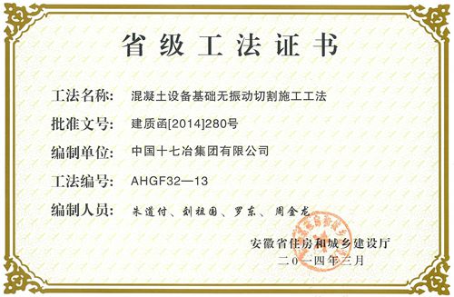 近日,从安徽省住房和城乡建设厅获悉,中国十七冶集团荣获5项省级工法。