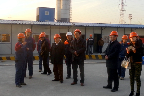 陶玉厚组长一行现场详细听取了项目经理徐良蓉对扬尘污染防治工作的汇报之后,对现场采取的扬尘污染防尘措施——场区道路硬化、砂浆搅拌机防护棚封闭、散装水泥罐进出料口防尘网封闭、外脚手架密目网封闭、密目网覆盖砂石、洗车台、自制洒水车及种植绿化等防尘、降尘措施进行了全面的检查。