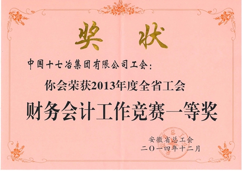 日前,从安徽省总工会办公室关于2013年度全省工会财务会计工作竞赛评比情况的通报上获悉,中国十七冶集团荣获2013年度全省工会财务会计工作竞赛一等奖。