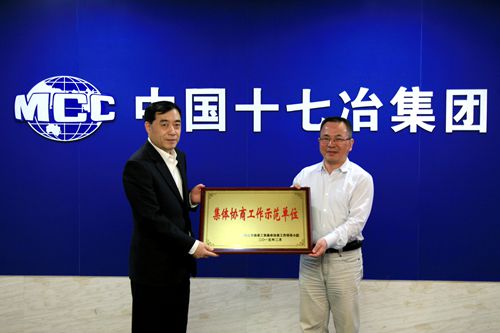 授牌前,王青松副主席、晏琢副主席与公司副总经理蔡进、工会副主席杨绍凤就十七冶工资集体协商等工作进行了座谈。蔡进副总经理简要介绍了公司目前发展情况、员工薪酬、海外员工工资发放和工会工作情况。王青松副主席对十七冶的工会工作、维护员工合法权益等工作给予了充分肯定。