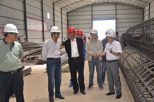 上午,酒泉市交通局马学会副局长一行实地察看了项目部预制梁场及钢筋加工厂建设情况,详细了解工程施工进展情况,并认真听取了项目负责人对项目建设和工程进展情况汇报,对盐什项目部的标准化建设、工程施工工艺、进度、质量、项目管理等方面给予了高度评价。马学会副局长表示,感谢十七冶对甘肃交通运输业发展做出的卓越贡献,欢迎像十七冶这样有技术、高效率、重安全、人性化管理的央企来甘肃投资发展。