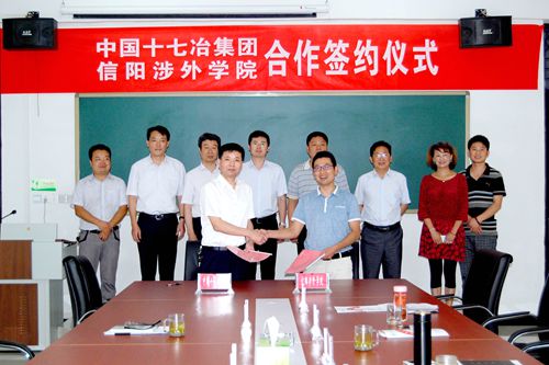 为进一步加强校企合作,促进资源优势互补,6月30日下午,中国十七冶集团与河南信阳涉外职业技术学院举行校企合作签字仪式,信阳市新县县委常委、副县长宋旭峰和副县长胡光志出席了签字仪式。