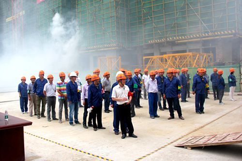 73,中国十七冶集团在城建工程技术公司承建的马鞍山安粮城市广场项目部施工现场组织了一场实景火灾、触电事故救援演练。马鞍山市安监局副调研员江吉庆、市建委质量安全科科长黄立金、市安监站总工陈秀峰及十七冶相关部门负责人到场观摩指导。