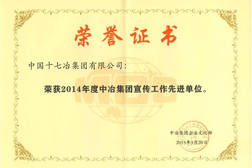 日前,中国十七冶集团荣获中冶集团宣传工作先进单位称号,公司新闻宣传工作位列中冶集团前列,受到中冶集团的充分肯定。