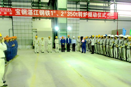 宝钢广东湛江钢铁基地项目炼钢工程设计年产钢水892.8万吨,优化配置铁水预处理、转炉炼钢、精炼主体冶炼设施以及与之相配套的公辅设施,配置独立设置铁水预处理中心,两个铁水倒罐坑,机械搅拌脱硫装置3套,预留1套,配置公称容量350t复吹转炉3座,单工位RH2套,LATS2套,双工位LF1套,均离线布置。本次倾动的转炉为目前我国国内出钢量最大的转炉,自201522日转炉就位以来,全体参战员工充分发扬“高效严谨、精细务实”的企业作风,以“一天也不耽误、一天也不懈怠”的中冶精神,克服气候炎热、设备供货慢等多方面困难,积极践行“24小时工作法”,兑现“决战345,确保转炉倾动”的重大节点承诺,为宝钢湛江炼钢工程“15.9”节点的顺利实现奠定了坚实的基础。