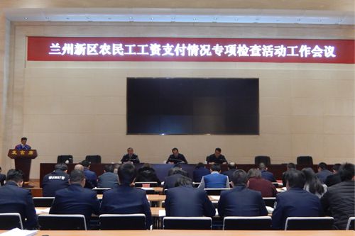 1210下午,兰州新区综合执法局召开兰州新区农民工工资支付情况专项检查活动工作会议,兰州新区管委会副主任李西新、综合执法局局长龙卫东以及中国十七冶集团甘肃分公司兰州新区瑞岭国际项目部等各施工单位代表共计150余人参加了会议。