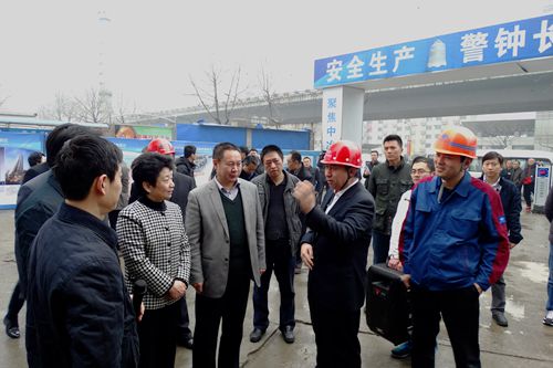 在十七冶长航项目部现场,黄莉新书记及南京市党政有关领导听取了鼓楼区负责人对该项目工程的建设和二期项目的规划与开发汇报,并详细地询问了建设单位和施工总包单位在市场营销、质量安全、工期保障等方面的工作进展情况。黄莉新书记对十七冶项目部在短短半年时间里实现了两栋主楼提前封顶,并取得鼓楼区“绿色工地”、“南京市建筑施工安全文明工地”称号、通过“第四批全国建筑业绿色施工示范工程”检查给予了高度评价。她要求十七冶长航项目部继续保持高标准管理品质,保质保量确保工程按期交工,为下关城区后期的规划和开发做出贡献。