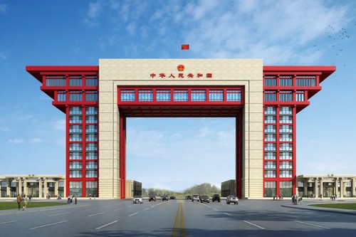 中越北仑河公路二桥口岸联检设施项目是中国东兴——越南芒街跨境经济合作区的标志性工程,项目包括国门楼、标准厂房和友谊大道等工程,主体工程国门楼位于中越北仑河公路二桥中方引桥桥头,项目规划用地面积172.6亩,总建筑面积5万多平方米,包括联检大楼1栋,配套建设广场、绿化、道路、停车场、围网、连廊等附属设施。其中国门楼东西方宽110米,南北方进深28.6米,最大高度68米,跨度60米,集国门形象展示、口岸联检、综合办公等多项功能于一身,将成为中国南方最高、最长、面积最大的沿边陆路口岸国门。