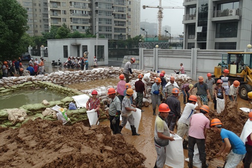 接到通知后,十七冶南京长航项目领导高度重视,立即启动了防汛抢险应急预案,在短短的十余分钟内就组织了一百多人的抢险队伍及相关器材奔赴抢险现场。项目副经理赶赴现场第一时间了解险情,在对抢险的一百多名队员进行了简短的动员和交底后,立即安排部署并现场指挥抢险工作。经过近五个小时的连续作业,队员们冒雨装土达50多立方,堆码土袋筑围堰高1.5米、宽1.5米、长30多米,有效地控制了险情。