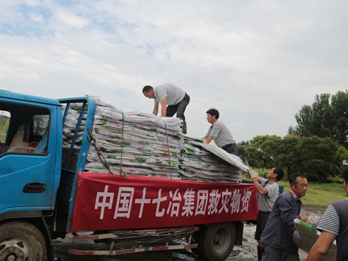中冶置业(安徽)公司紧急调集10多万条编织袋、10吨铁丝、32万平米彩条布、200根木桩及帐篷、排水泵等合计人民币65万元的救灾物资,第一时间送达现场,确保抢险需要。第二批物资也已准备,按计划送达。