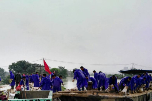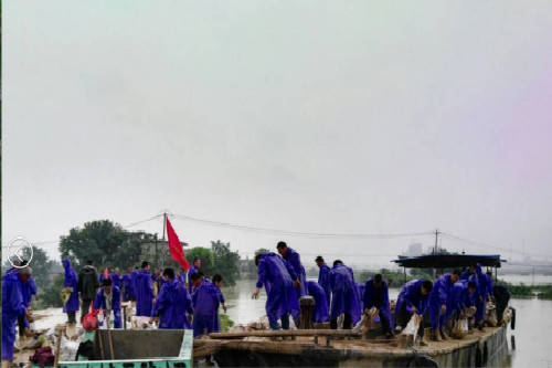 “抗洪抢险突击队”和“党员突击队”正日夜坚守在防汛抢险前线,随时准备应对一切挑战,守卫江堤,保卫家园。