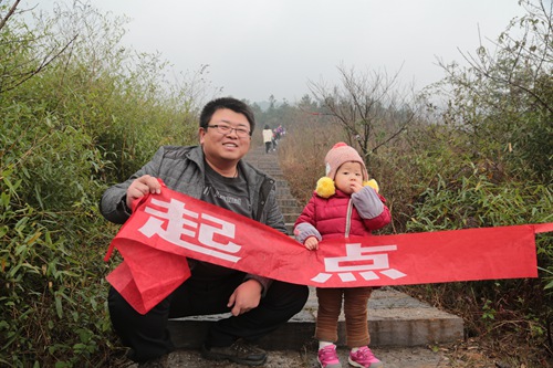 登山队伍经过一个多小时的车程,驶抵登山比赛的起点横山小龙王庙停车场。山脚集结待命,合影留念,分发号码,短暂的休整后,比赛开始了!比赛分为成人男、女组和亲子组。比赛的队伍从山下排成一条长龙,向峰顶进发了。石阶蜿蜒而上,最多能容两人并列而行,循着诗仙的足迹,大伙儿陆续到达峰顶,又向终点拾级而下。一路上近观山林诸景,远观山间氤氲,领略了别样的意境。