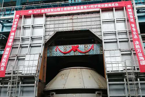 山钢日照精品基地炼钢主车间工程设计年产钢水872万吨,一步优化配置铁水预处理、转炉炼钢、精炼主体冶炼设施以及与之相配套的公辅设施,配置公称容量210t复吹转炉2座、2套KR铁水脱硫装置,2套吹氩喂丝站,双工位LF精炼炉1套、双工位RH2套,均离线布置。自2017年1月20日转炉就位以来,全体参战员工充分发扬“高效严谨、精细务实”的企业作风,以“一天也不耽误、一天也不懈怠”的中冶精神,克服重重困难,积极践行“24小时工作法”,兑现“奋战3、4、5,确保6月份全面进入试车阶段”的重大节点承诺,为山钢日照精品基地炼钢主车间工程“8.10”节点的顺利实现奠定了坚实的基础。