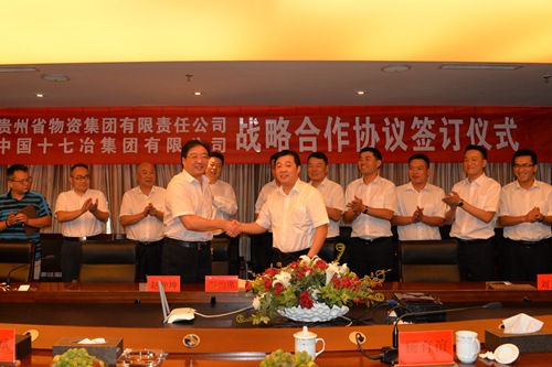 7月27日下午,中国十七冶集团有限公司与贵州物资集团有限责任公司在贵阳市贵州物资集团总部签订战略合作协议。贵州物资集团总经理、党委副书记赵仲坤和中国十七冶集团总经理、党委副书记刘安义代表双方签约。