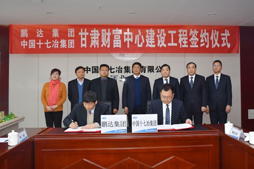 1月7日,中国十七冶集团与甘肃鹏达集团在兰州陇星大厦举行甘肃财富中心项目建设工程签约仪式。甘肃鹏达集团董事长李鹏举,副总经理马民光、魏容,总工程师杨国连;中国十七冶集团董事长、党委书记喻世功,公司总经理、党委副书记刘安义,公司纪委书记、副总经理蔡进,公司副总经理、西北公司总经理陈阳,公司副总经理、西北公司常务副总经理刘宇等出席了签约仪式。甘肃鹏达集团董事长李鹏举和十七冶副总经理、西北公司总经理陈阳分别代表双方在协议上签字。