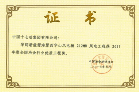 科技创新谋发展,博采众长享双赢。2017年,按照中国十七冶集团科技创新任务指标,提前策划,加大激励机制,组织技术人员参加培训学习科技创新知识,提高科技创新意识,技术成果撰写能力和写作质量得到了切实有效的提升。全年共受理发明专利7项、实用新型专利7项,发表技术论文3篇。《复杂环境下地面集中式光伏电站施工工法》获得2017年度冶金建设行业部级一级工法;《开展QC活动,确保预应力锚栓组合件安装精度》获2017年度全国冶金建设行业QC成果二等奖;《山地风电场大型风力发电机组施工新技术研究与应用》获得2017年中冶集团科学技术进步二等奖。同时,公司认真贯彻落实住房城乡建设部工程质量安全提升行动要求,梳理并逐步认清制约质量管理的弱点与短板,有针对性地实施重点突破,提升工程质量管理水平。华润新能源海原西华山风电场212MW风电工程荣获2017年度冶金行业优质工程奖。