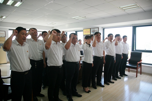最后,全体参会人员在鲜红的党旗前重温了入党誓词。
