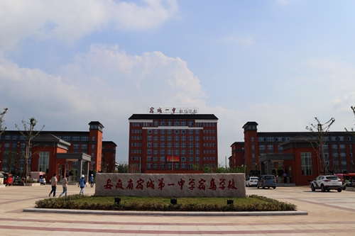 走进这所崭新的现代化中学校园,笔直的主干道两侧是篮球、排球场,穿过方形的广场便是挺拔的教学主楼,主楼东西设置有行政楼、教学楼、实验楼等,计算机教室、图书馆、电子阅览室、音乐室等功能齐全。校园东边活动休闲区设置有400米标准塑胶跑道,足球场的人造草皮清新鲜亮;西边的生活服务区设置有宿舍楼和餐厅,并配有超市、饮水处、医疗室等服务设施,为学生提供了全面的生活保障服务。整个校园崭新干净,校舍外观古朴典雅,高低树木错落有致,文化气息浓郁。
