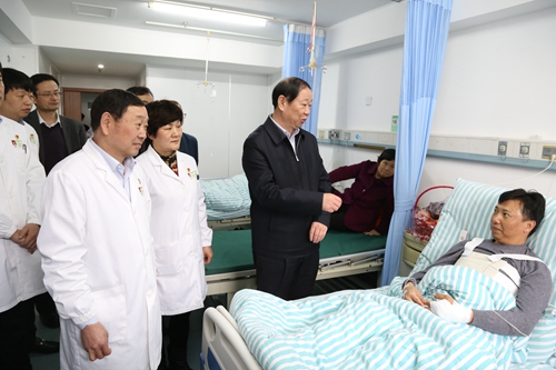 321日,马鞍山市市长左俊、副市长吴劲来到十七冶医院,在市卫健委党委书记、主任杨荣明和十七冶医院党委书记陈斯菊、院长尚昌凤、副院长贾先慧等陪同下,看望20日中午暴风灾害中的受伤人员。