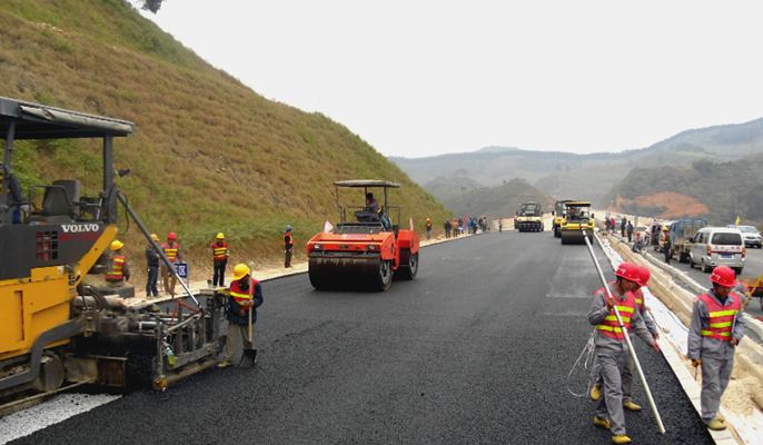 广西百靖高速公路工程起于田阳县那坡镇那音村接南百高速,止于靖西县新靖镇亮表村接广西高速公路网规划中的靖西至龙邦公路,全长98公里,路基宽度为26米。中国十七冶集团承建其路基5标段和路面1标段。路基5标项目工程主要包括桥梁工程5座全长1264米,隧道工程1座全长412米,路基土石方工程挖方88.26万立方米、填方73.14万立方米,全长3650米。路面1标施工内容主要包括主线25.615公里沥青路面、坡洪连接线12.697公里混凝土路面。