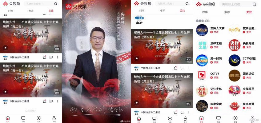 “央视频”既是中央广播电视总台倾力打造的有品质的视频社交媒体,也是我国第一个运用中台技术的中央媒体。上线当天,由中冶集团党委宣传部联合央视国际频道(CCTV-4)重磅推出的四集《熔铸九州》冶金建设国家队专题纪录片在网友的交流和分享中得到广泛传播,进一步展示和树立中冶集团作为世界第一冶金建设国家队的强大实力与品牌形象。