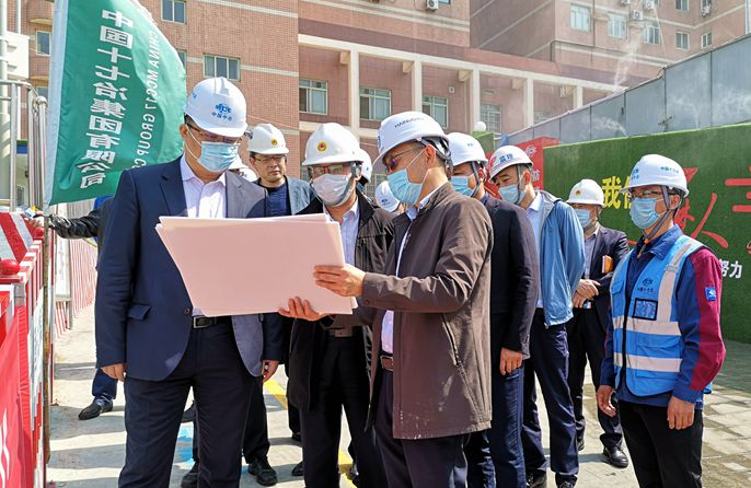 在施工现场,刘庆武主任听取了项目负责人对项目规划、工程进度等工作的汇报,重点查看了项目安全、环保、消防、防疫、防汛及相关物资储备情况,并对项目部的标准化管理给予充分肯定。刘庆武主任强调,该项目为深基坑工程,项目部要持续做好安全及防汛工作,落实好防汛方案及应急预案,加快工程建设进度,争取早日交付使用。