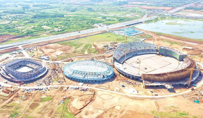 作为安徽省重点项目,滁州市奥体中心项目一直都是省市复工复产关注的重点。2月20日,项目一线作业人员陆续到岗,掀起节后复工热潮,全面吹响复工集结号。3月5日,经滁州市教体局、滁州市重点工程处、业主和监理单位等组成的验收小组检查,项目地基与基础分部通过质量验收。4月28日上午,项目游泳馆金属屋面完成第一吊。5月18日上午,项目体育场西看台混凝土浇筑完成,顺利封顶,为后期钢结构吊装创造了条件。目前,体育场仅剩下东看台混凝土结构未施工完成,根据施工计划,体育场混凝土结构将于6月底全面完成。