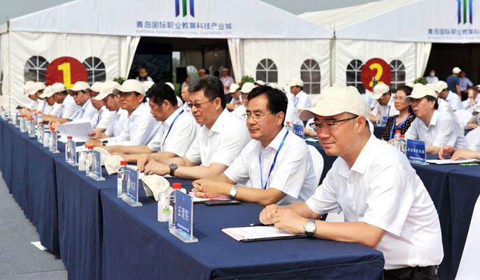 仪式现场,青岛国际职教城教育及实训中心、联合国教科文教育信息化大会永久会址、国际职教城基础设施项目、国际职教城生态环境综合治理工程等四个项目同时启动开工,青岛国际职教城建设全面启动。