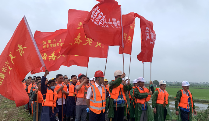 全力以赴抗洪抢险,党旗飘扬辉映初心。6月底,长江流域遭遇特大洪水,中国十七冶集团提早成立防汛抢险队伍,第一时间闻汛而动,封堵决口垒高堤坝,救援转移被困村民,把党旗插在风口浪尖,为跑赢洪水争分夺秒。在坚守大堤的一个多月里,参与抗洪抢险人数达到5322人次,出动挖掘机、土方车辆、载客大巴120台次,消耗救生衣280套、麻袋18700条 ,砂石料2000余立方米,填筑沙袋52600余袋,组织医疗、团委等单位深入防汛一线开展各类医疗、慰问志愿服务,累计服务近2000人次,举全局之力做好防汛减灾,受到马鞍山市委市政府高度肯定。