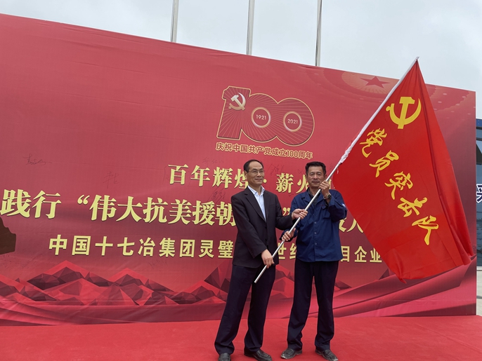 在学党史、悟思想环节,通过观看记录片《伟大的抗美援朝》节选、赠送《论中国共产党历史》书籍、全体党员重温入党誓词、“践行伟大抗美援朝精神 建设人民满意工程”主题签名等系列活动,重温抗美援朝的那段光辉历史,回顾那段艰辛的奋斗历程。全体人员一致表示要继续传承先模人物的红色基因,立足本职岗位,求真务实地完成项目建设各项工作,彰显十七冶作为基本建设主力军的实力与担当。活动中,项目党支部在现场成立党员突击队并授旗,项目部全体成员当场承诺必定全心全意完成任务。党支部书记张圣杰郑重表态,要充分发挥党支部战斗堡垒作用和党员先锋模范作用,将“抗美援朝精神”落到实处,全体人员必定奋力拼搏,真抓实干,全力冲刺赶工期,保质保量地完成任务,保证项目高质量交付。