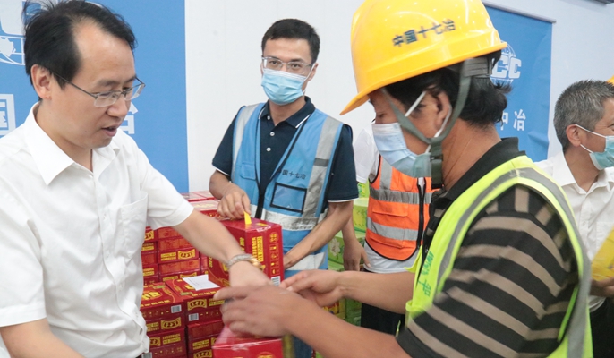 次日,魏致家主席一行代表公司工会到西安片区的中冶集团西北区域总部、中冶·德贤府邸、泾河新城污水处理厂、西交大一附院国际陆港医院等项目开展“送清凉”慰问活动,向项目一线作业人员发放了绿豆、白糖、西瓜、凉茶、矿泉水和藿香正气水等防暑降温物资。他强调,各项目部要在做好疫情防控的前提下,避过高温时段,合理安排作息,及时补足防暑降温物资,严格落实安全生产规定,为广大一线员工营造一个平安、健康的工作环境,为打造精品工程贡献力量,为公司高技术高质量发展保驾护航。