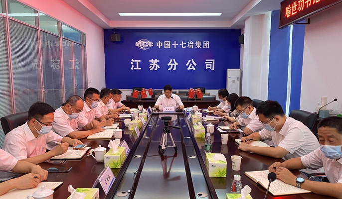 8月24日下午,中国十七冶集团党委书记、董事长喻世功到党建联系点江苏分公司机关党支部讲授党课并开展专题调研。中冶集团指导组袁中甲处长通过视频连线方式全程参与指导。公司工会主席、副总经济师、党委组织部部长魏致家,工会副主席、党群工作部副部长李静,江苏分公司领导班子成员,部分党员和群众代表参加党课学习。