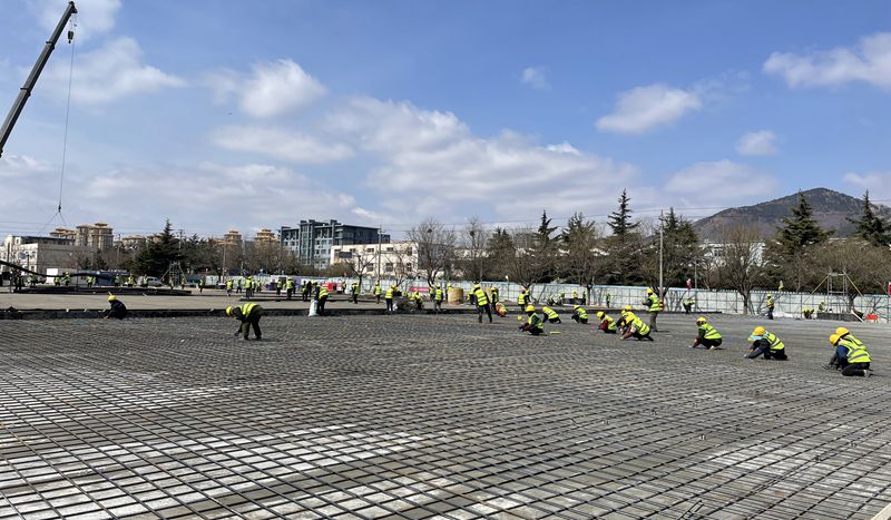 3月19日,青岛分公司抢建当地防疫设施已奋战至第六天。经过管理人员及作业人员的不间断努力,目前2#、3#、4#、5#护理单元防渗层施工已经完成;保护层浇筑完成;3#舱筏板钢筋绑扎完成,2#、4#、5#舱筏板钢筋绑扎完成50%。现场8台大挖机、5台小挖机、1台汽车泵、1台汽车吊、2台洒水车正在不间断作业中;210余名作业人员依然奋战在现场。